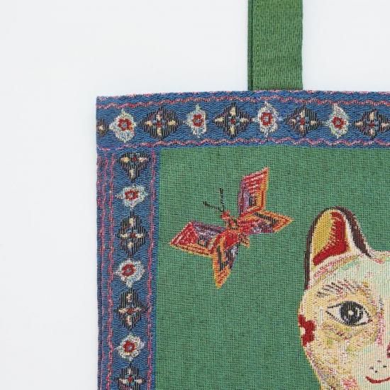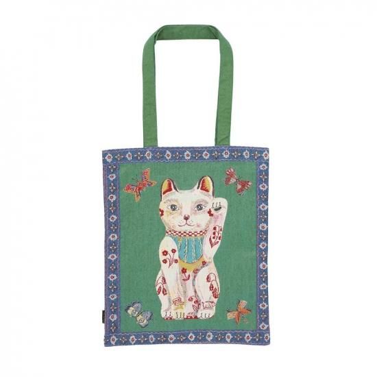 【ナタリー・レテ】レクタングル・トートバッグ ラッキー・キャット 白招き猫のゴブラン・トートバッグ |