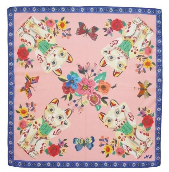【ナタリー・レテ】ラージ・ハンカチ ラッキー・キャット 白招き猫のミニ・コットンスカーフ