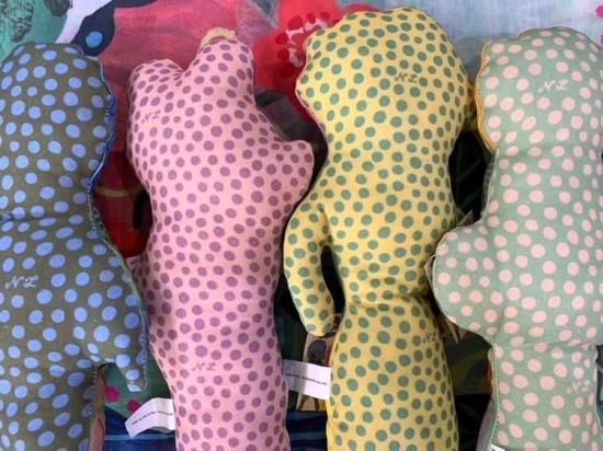 クッション裏面のファブリックはフリーハンドなドット・パターン。