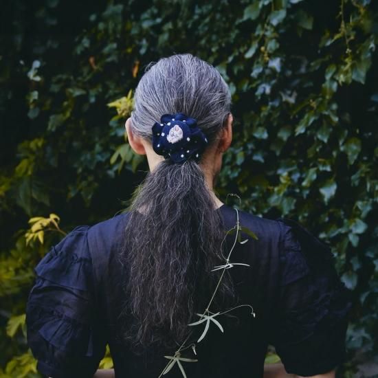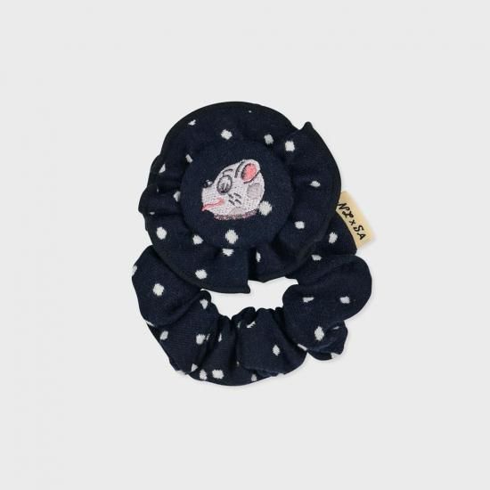【ナタリー・レテ】フリル・ヘア・スクランチ ドミノ・ザ・ドッグ ブレーメンの犬の刺繍シュシュ |