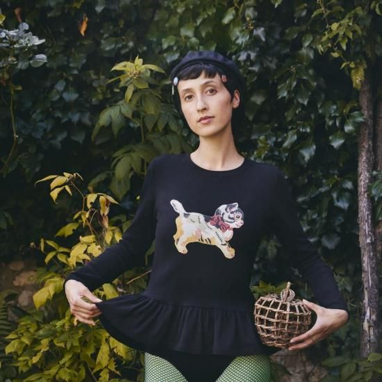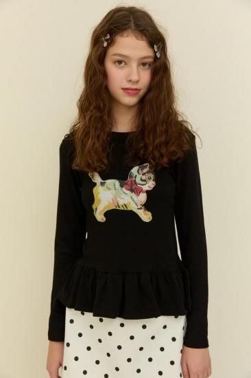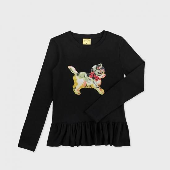 【ナタリー・レテ】ラッフル・ロング・Tシャツ ヴィクター・ザ・キャット ブレーメンの猫のプルオーバー |