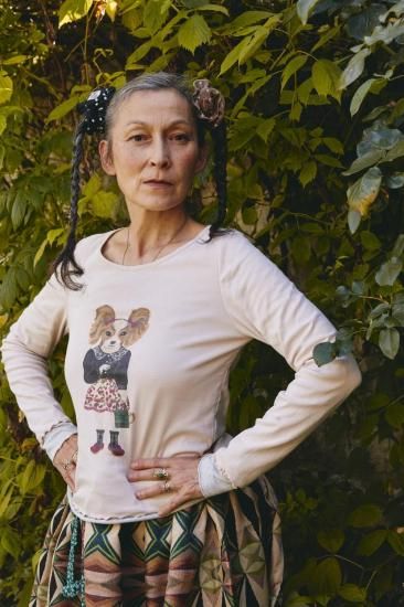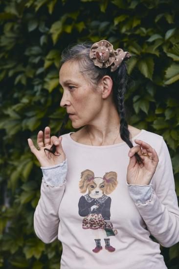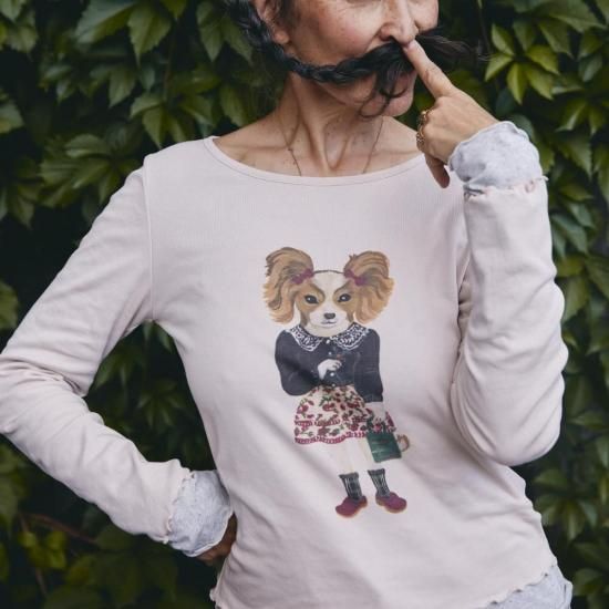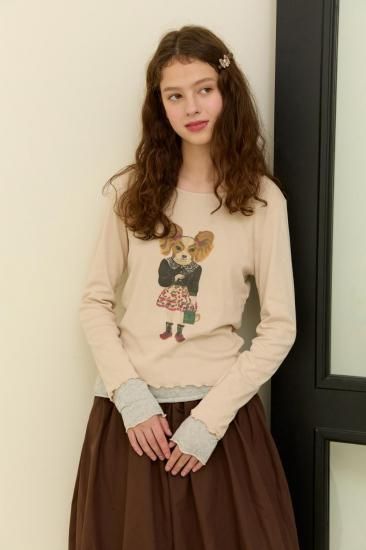【ナタリー・レテ】レイヤード・ロング・Tシャツ ミス・バティ ツインテール犬のプルオーバー |