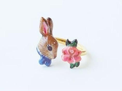 【ナタリー・レテ】2モチーフ・リング ラビット SIZE:11~13 茶ウサギと小花の指輪 11~13号